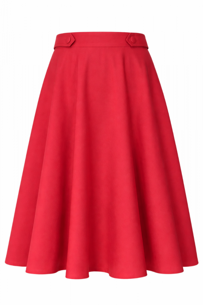 Leveä, polven alapuolelle ulottuva kellohelma laskeutuu upeasti ja liikkuu mukana jokaisella askeleella – juuri niin kuin täydellisen kellohameen kuuluukin. Käytännölliset taskut sivusaumoissa tuovat mukavuutta arkeen, ja vyötärön tampit sekä koristenapit viimeistelevät ilmeen kauniisti.
