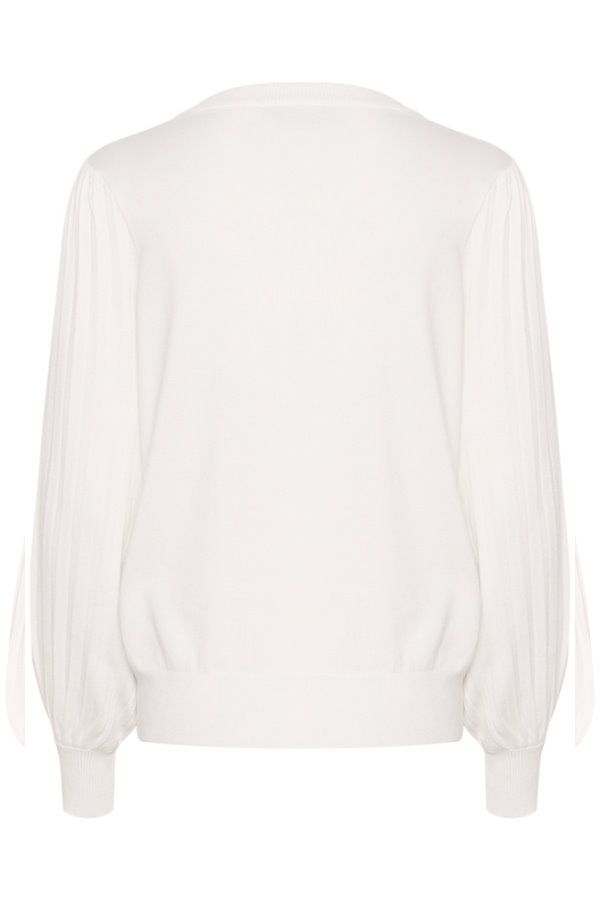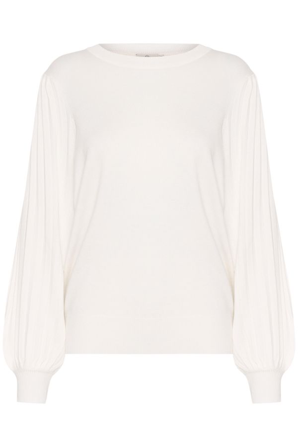 The classic round neckline and neat ribbed trims at the hem and cuffs create a clean, refined finish. The real standout detail is the feminine full length puff sleeves with delicate pleating – a subtle touch that gives this simple knit an elevated look.