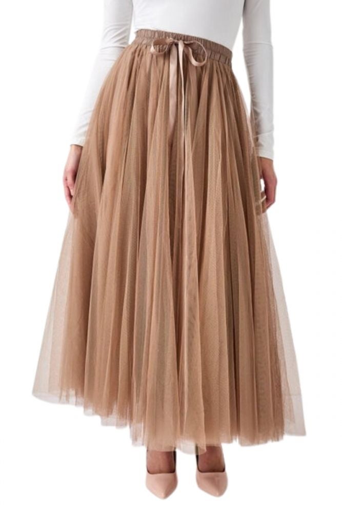 Näyttävä, muhkea tyllihame, joka kääntää katseet! Tässä hameessa on käytetty runsaasti tylliä ja tyllin alla on vuorikangas. Mukava, joustava vyötärö, jossa koristenauhat edessä.