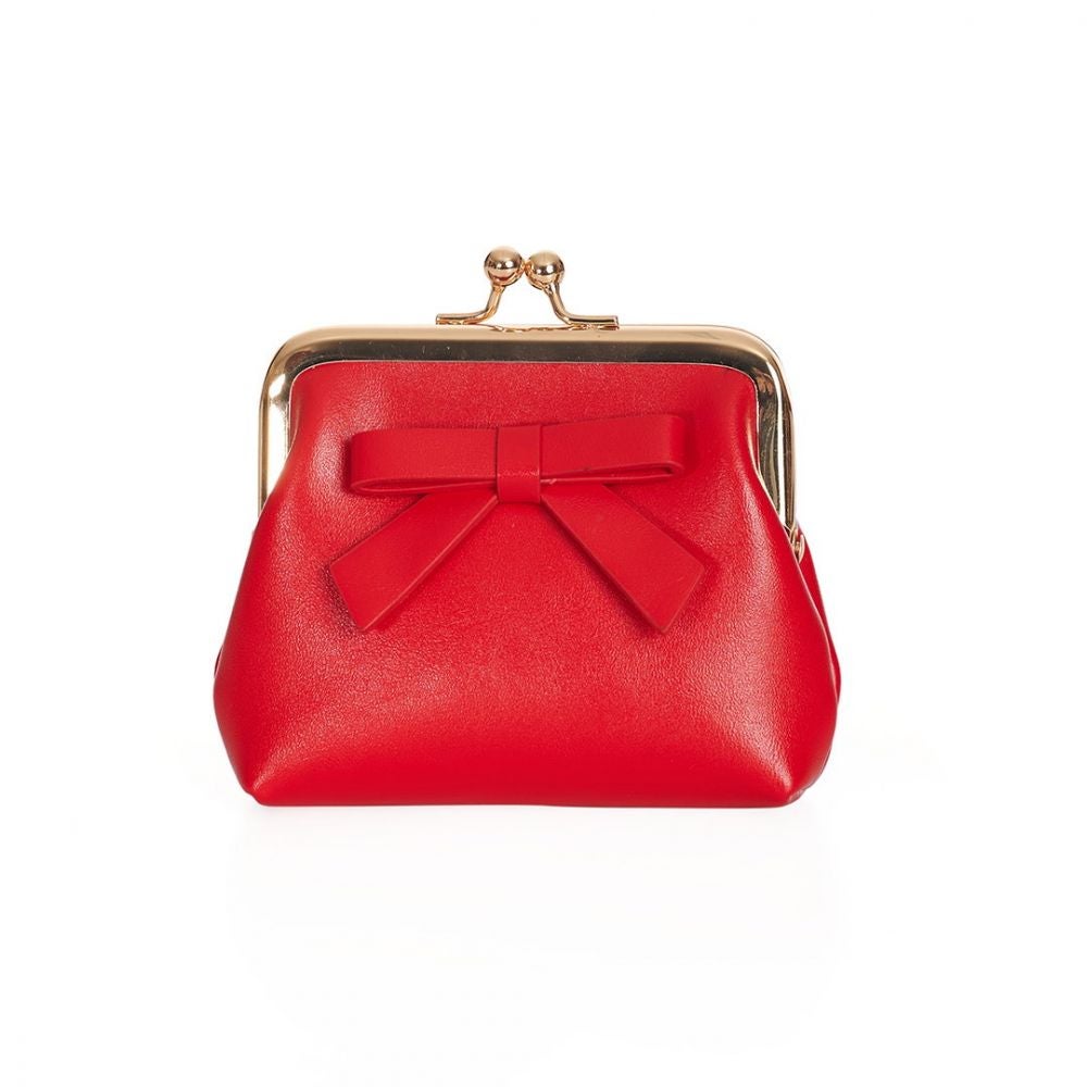 Suloinen, pieni retrotyylinen lompakko, jossa edessä koristerusetti. "Kiss-lock" suljenta.