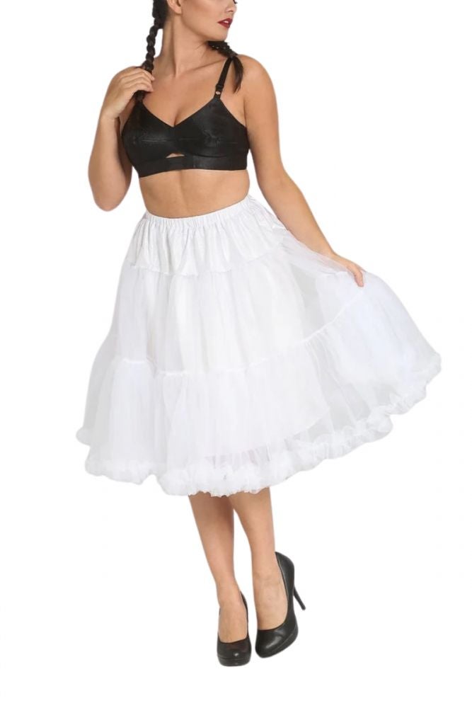 Tällä tyllialushameella tuot hillittyä ja luonnollista nostetta kellohelmoillesi. Aluhameessa on yksi muhkeutta tuova tyllikerros, jonka alta löytyy alushame. Tyllin alareunassa röyhelöreunus. Erittäin joustava kuminauhavyötärö (napinläpikuminauha), jota pystyy säätämään sivussa olevan napin avulla.