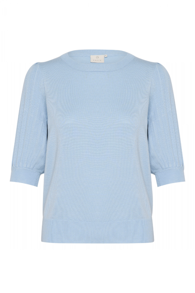 Ihanan pehmeä ja joustava neulepusero. Puserossa on pyöreä kaula-aukko sekä puolipitkät, naiselliset pussihihat pliseerauksella. Resorit hihansuissa sekä helmassa. Helma ulottuu lantiolle, mutta helmaresorin ansiosta voit myös kääntää helma halutessasi lyhyemmäksi.