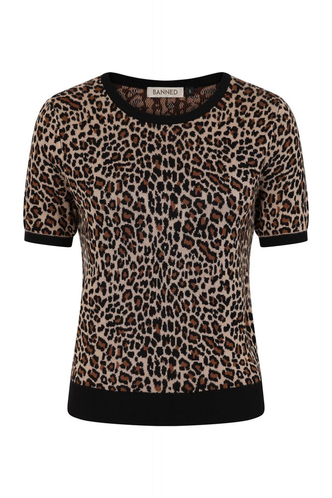 Ihana leopardikuvioinen, lyhythihainen neulepaita, joka on valmistettu pehmeästä ja mukavasta viskoosista!