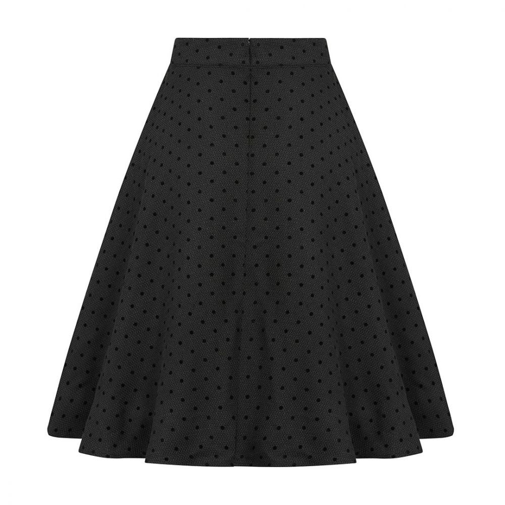 Kauniissa Annie hameessa on puolikellohelma, joka laskeutuu hieman polven alapuolelle. Ajaton polkadot kuviointi.