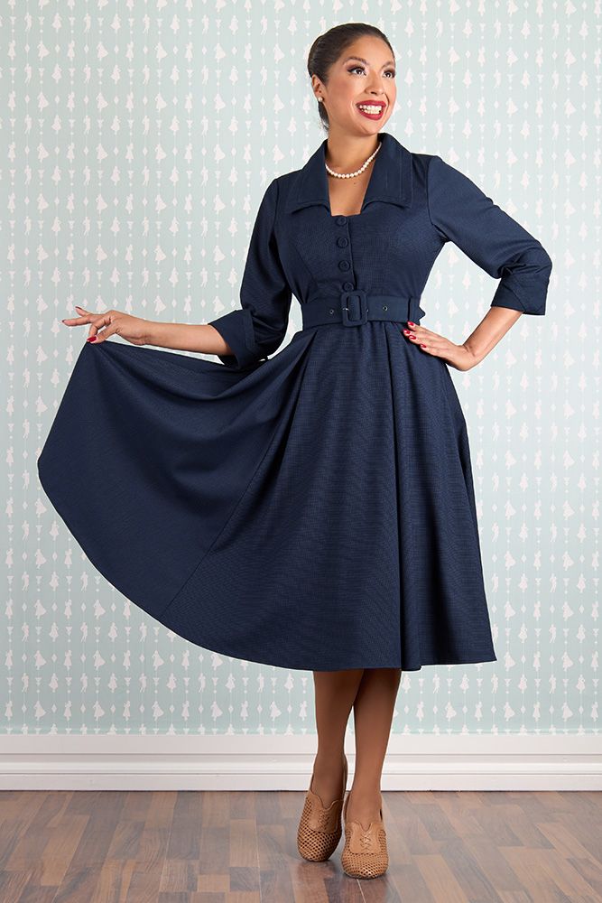 Astu uuteen kauteen tässä upeassa kellomekossa, jonka syvä yönsininen sävy henkii klassista eleganssia.