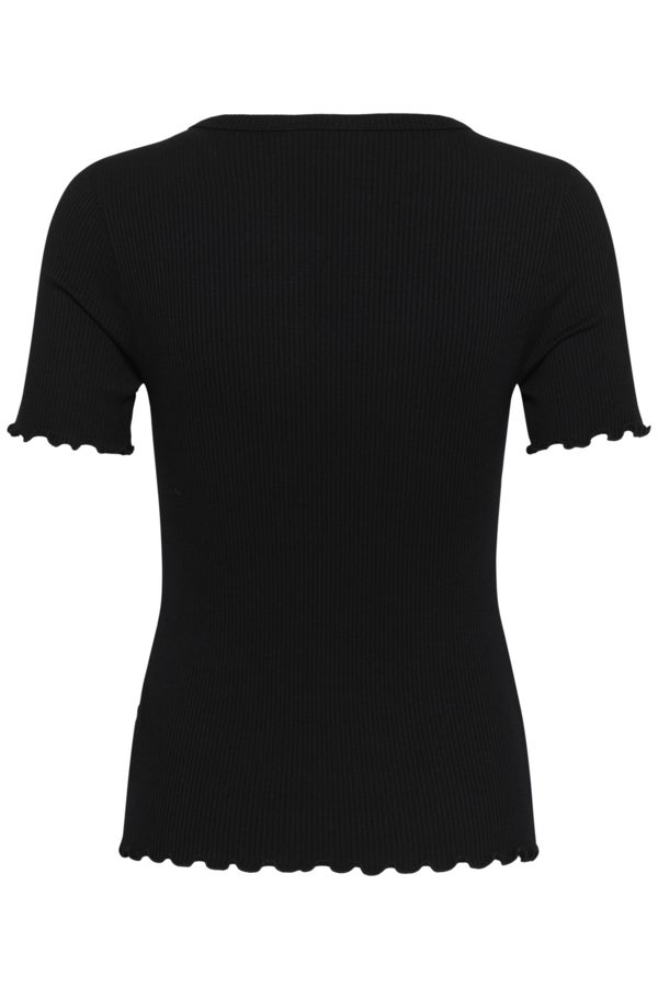 Hienovaraisesti aaltoilevat hihansuut ja helma tuovat paitaan romanttista ilmettä. Klassinen musta sävy tekee tästä monikäyttöisen yläosan, joka sopii upeasti esimerkiksi kellohameen tai farkkujen pariksi.