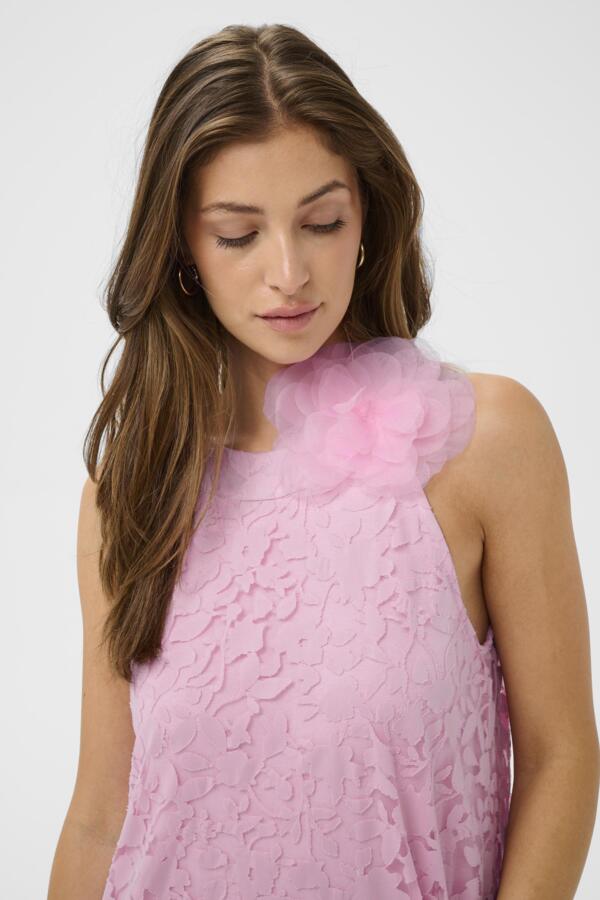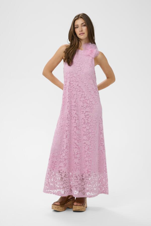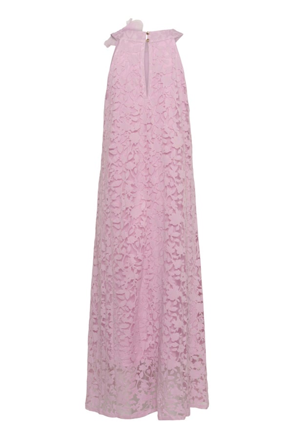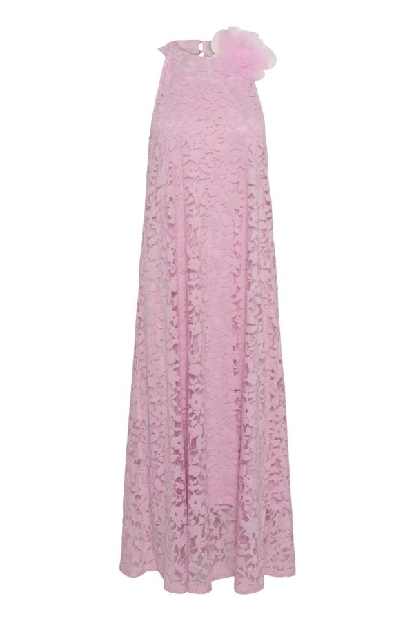 Jessica maksimekko hurmaa pastellisella vaaleanpunaisella sävyllään ja näyttävällä kukkatekstuurilla, joka tuo asuun romanttista eleganssia. Kauniisti laskeutuva pitkä helma luo ilmavan siluetin, joka toimii täydellisesti niin kesäjuhlissa, häissä kuin muissakin erityisissä hetkissä.