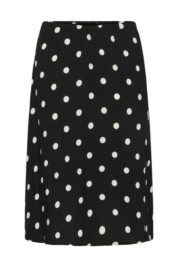 Saint Tropezin pallokuosinen viskoosihameessa on klassista tyyliä. Mustavalkoinen pallokuosi luo ajattoman ilmeen, joka toimii sesongista toiseen ja on helppo yhdistää erilaisiin yläosiin.