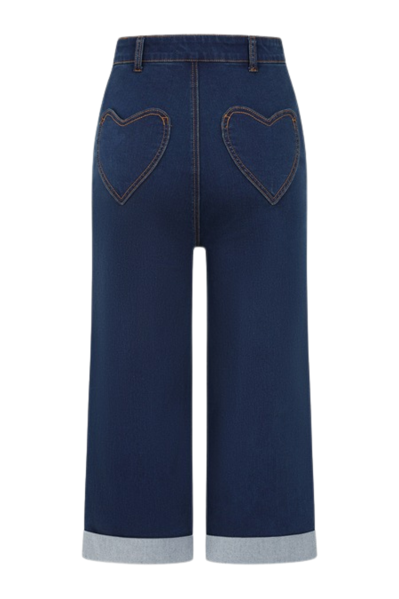 Banned Retron Mandy Love -farkkucaprit yhdistävät täydellisesti mukavuuden ja leikkisän retrohenkisen tyylin. Takataskujen suloiset sydänmuotoiset yksityiskohdat tuovat asuun persoonallista ilmettä.