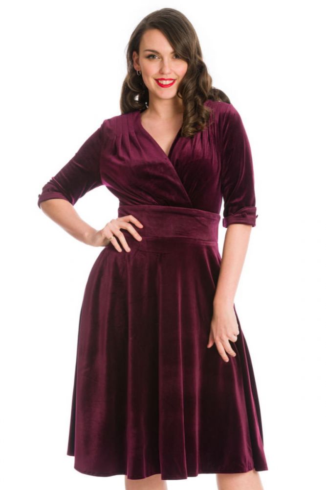 This beautiful, vintage-inspired dress is made from beeeautiful, shiny velvet and it has a gorgeous fold over detail to the bust.