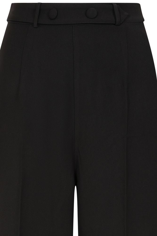 The back zip fastening and the fabric-covered decorative buttons at the front add a refined finishing touch. Discreet side-seam pockets offer practicality without compromising the clean silhouette. The wide legs fall beautifully, making these trousers perfect for both the office and more festive occasions.